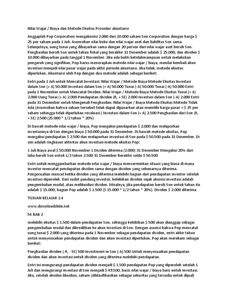 Metode Biaya Dan Ekuitas - Nilai Wajar Biaya Dan Metode Ekuitas Prosedur Akuntansi Pdf / Adan ya pembelian saham baru.